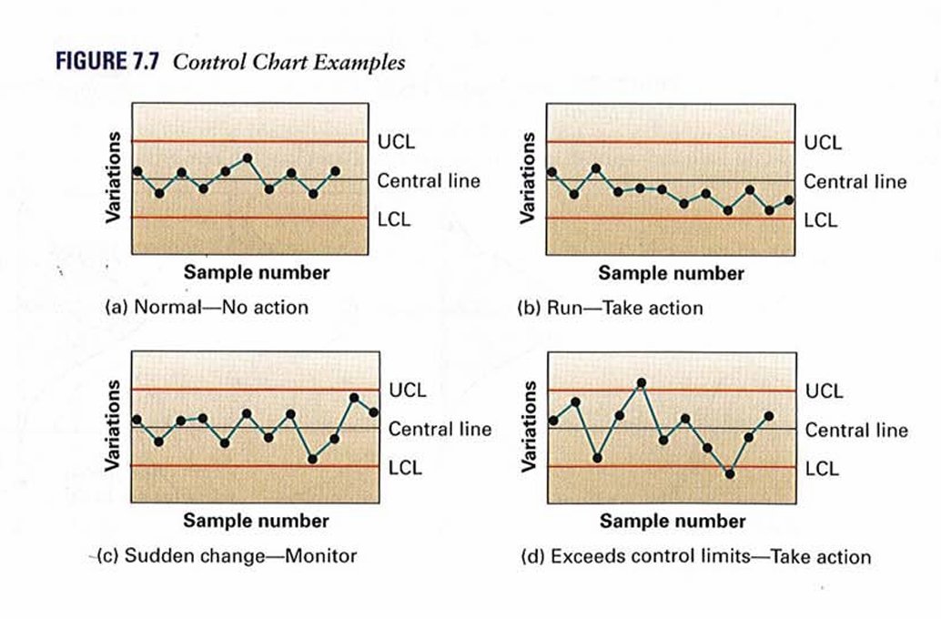 If the distribution changes (mean shift, variance increase, structural change), the process is out of control.